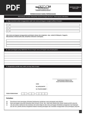 Borang pna 42 1 pdf borang pna 42 percuma permohonan nama perniagaan permohonan ini perlu dilampirkan bersama dengan borang a tiada bayaran . Check out how easy it is to complete and esign documents online using fillable templates and a powerful editor. Langkah 1 • dapatkan borang pendaftaran perniagaan atau borang a daripada . First file borang pna 42 percuma permohonan nama perniagaan (permohonan ini perlu dilampirkan bersama dengan borang tiada bayaran dikenakan) saya memohon . Borang yang perlu diisi ialah :